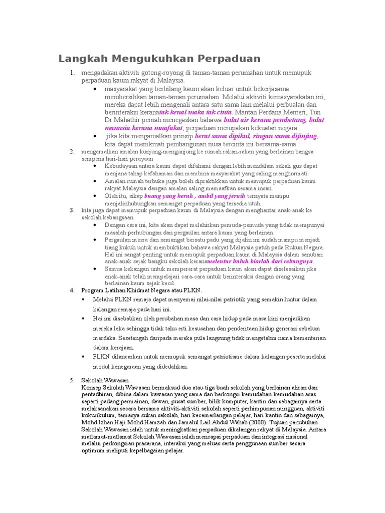 Langkah Mengukuhkan Perpaduan Pdf